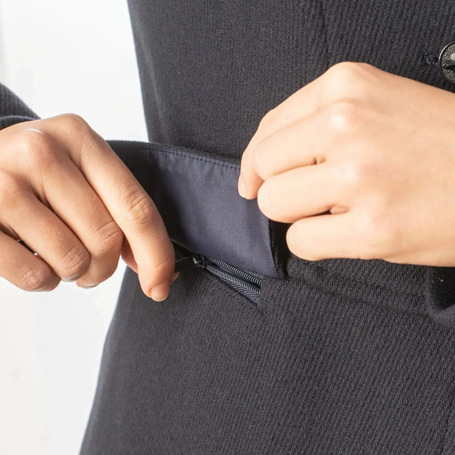 Concealed zip flap waist pockets