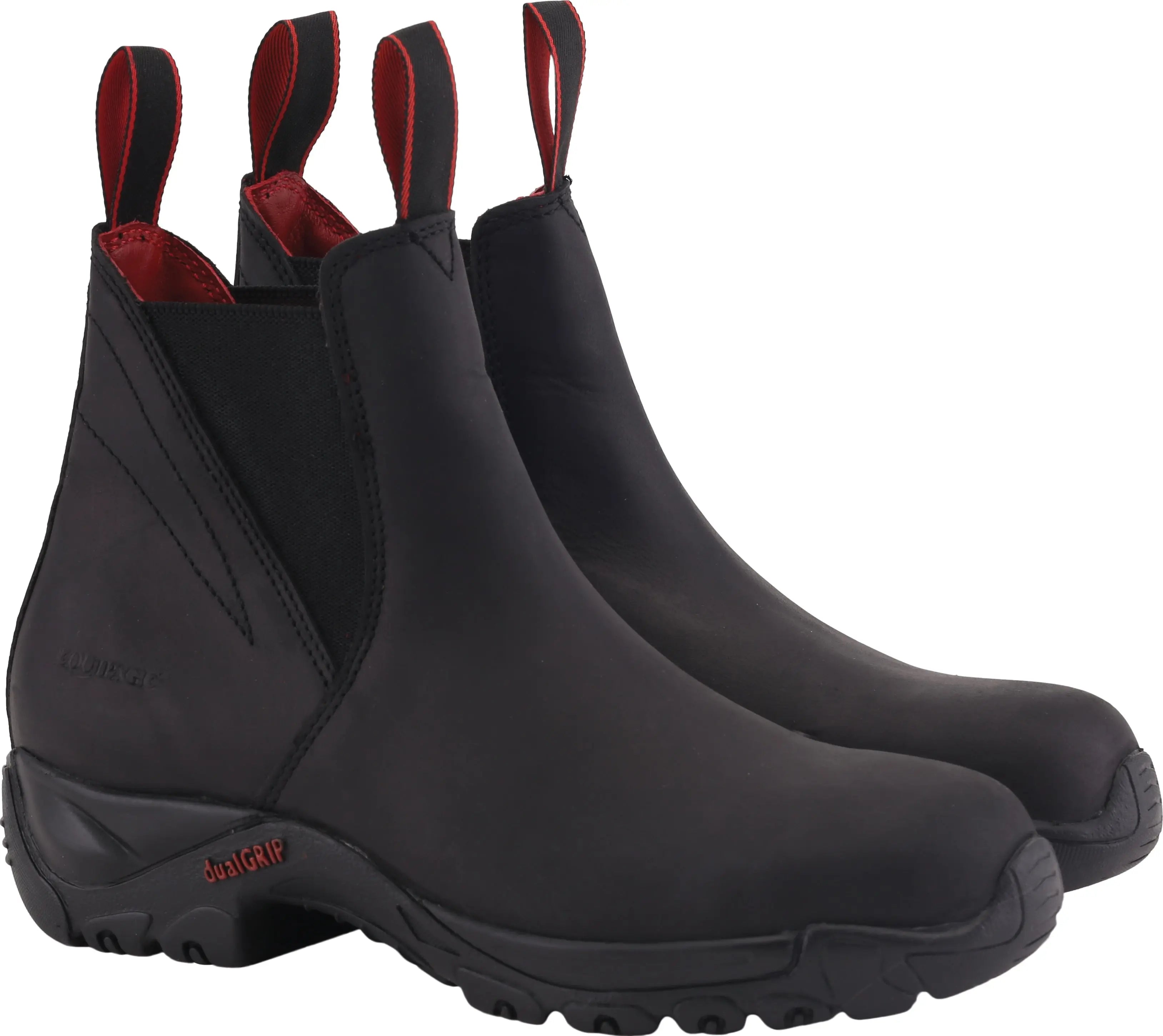 Constructed from premium black leather with striking red pull tabs, the Toscana is built for the rigours of yard life. The innovative dualGRIP sole provides superior traction on slippery surfaces, while the elasticated side gussets ensure a secure yet flexible fit. Whether you are mucking out, handling youngstock, or heading out for a ride, these safety boots provide the peace of mind you need without compromising on classic British style.