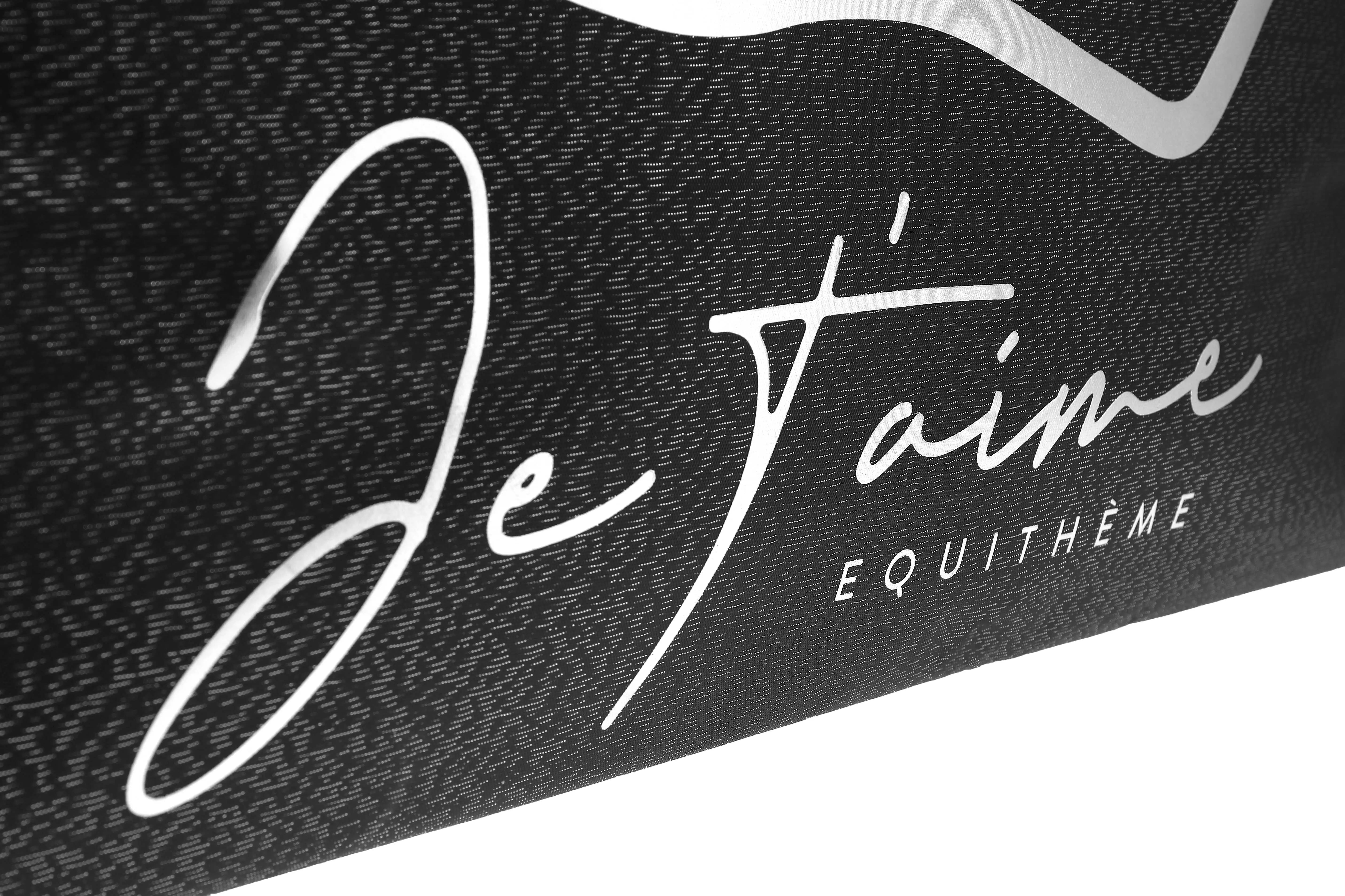 - Large logo and "Je t'aime" EQUITHÈME signature on the front.