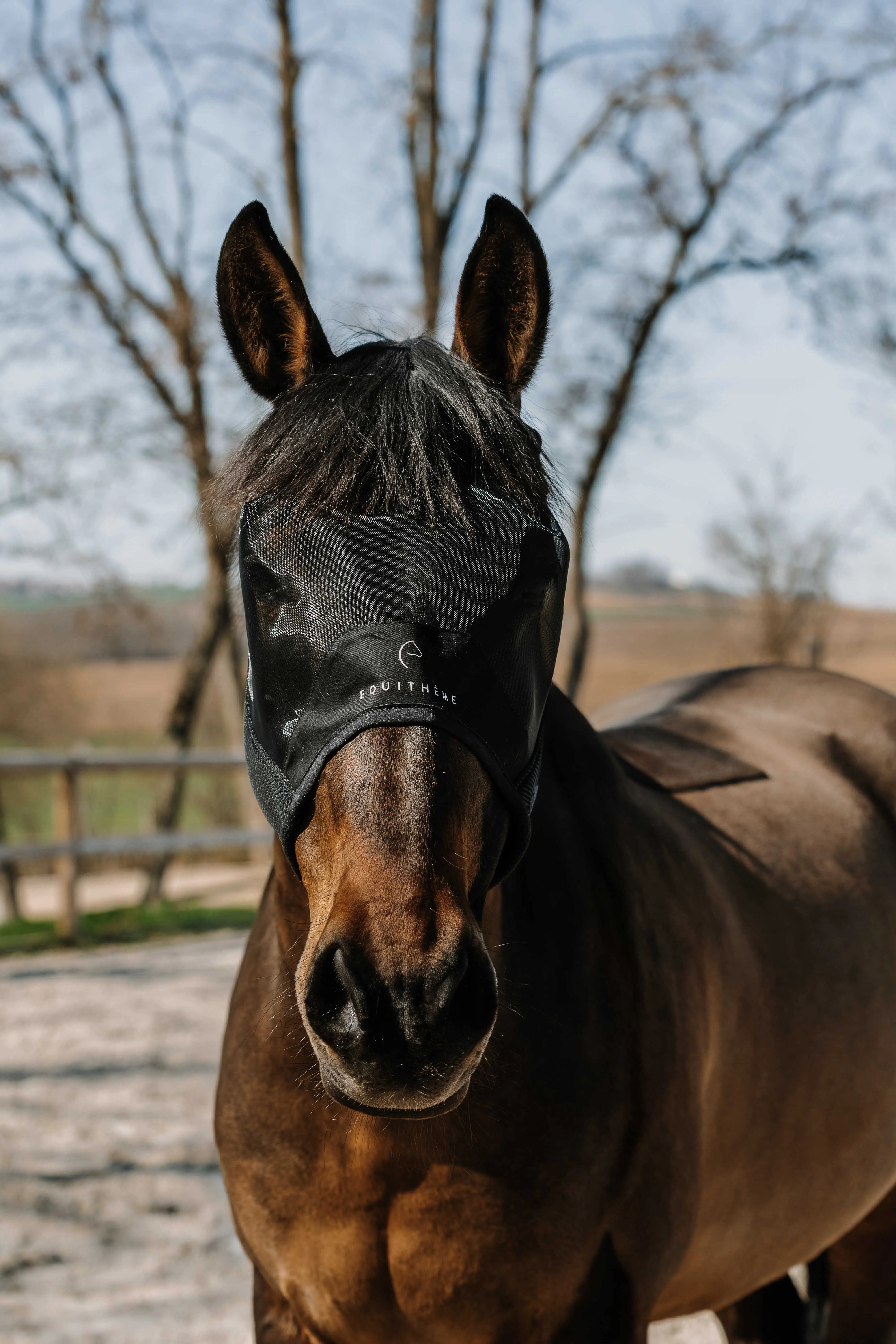 The earless version of the comfortable and breathable mask. - Effective Protection: Shields against insects and sunlight with UV 50 protection. - Breathable & Lightweight: Made of honeycomb mesh for optimal ventilation. - Ultimate Comfort: Padded fabric reinforcement on the front of the nose. - Practical & Adjustable: Secures under the jaw with two hook-and-loop fasteners. DETAILS: - Fly mask without ears.
