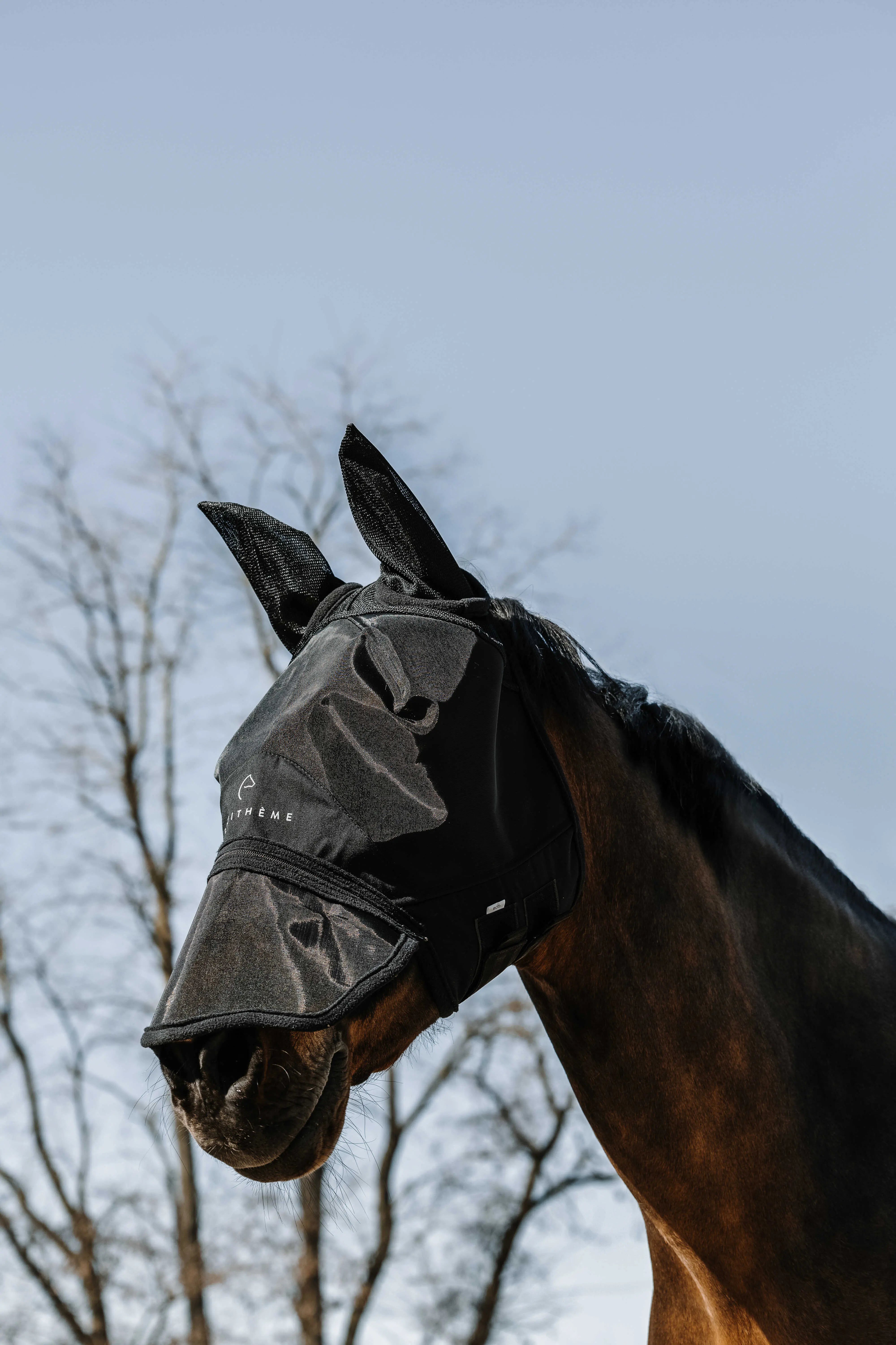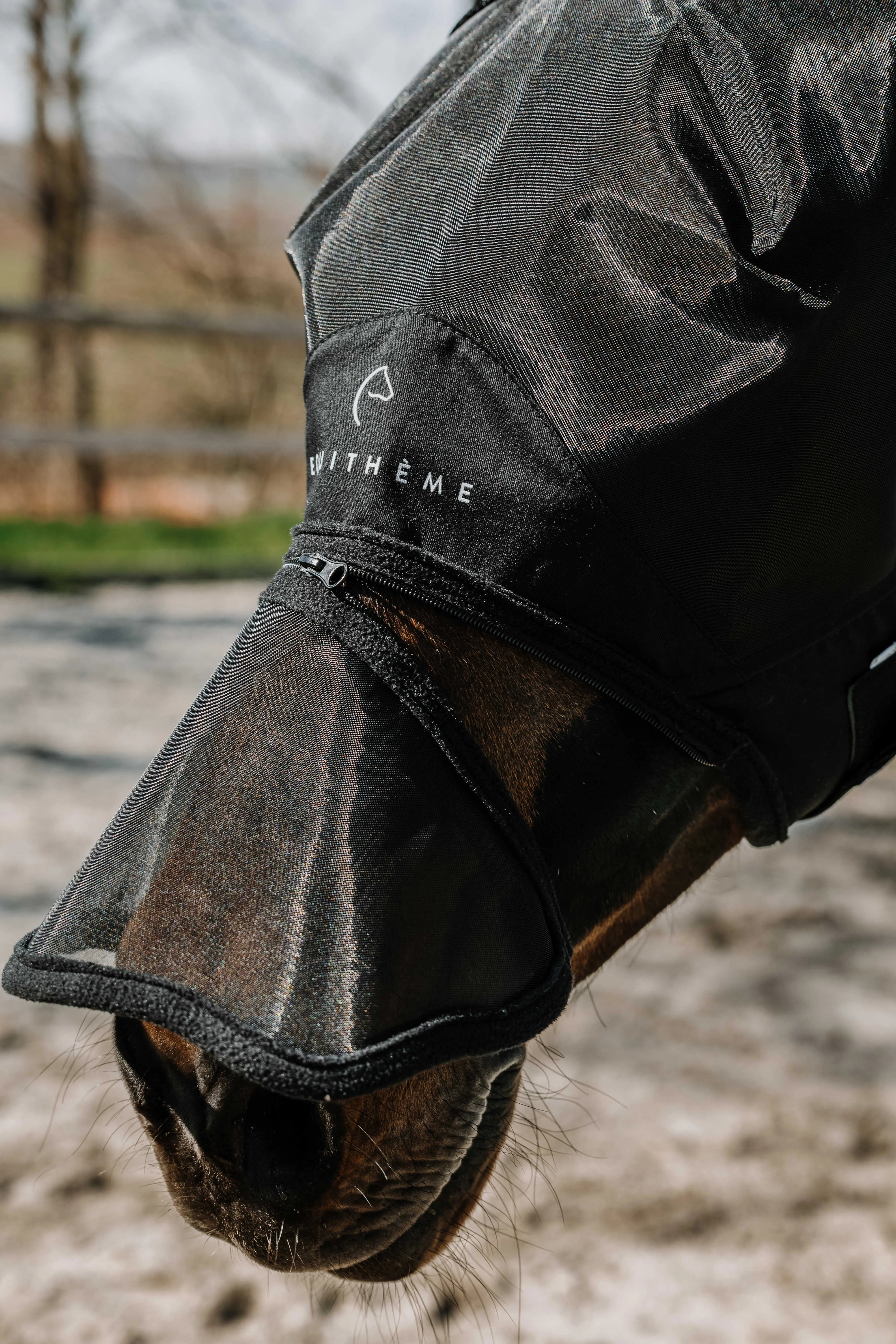 Lightweight and adjustable for optimal comfort and protection. - Effective barrier: Protects against insects and sunlight with UV 50 protection. - Adjustable: Equipped with a removable nose guard with a zipper closure. - Practical and adjustable: Fastening at the throatlatch with two hook-and-loop straps. DETAILS: - Lightweight and comfortable design.