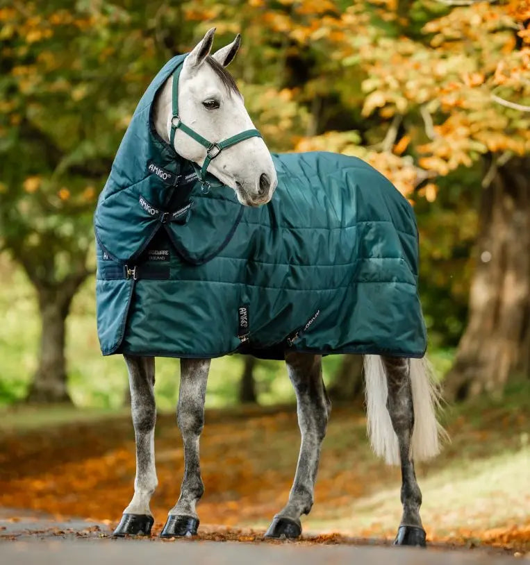 Horseware Ireland Amigo Ripstop Insulator Stable Rug Hood 100G Dynasty Green / Navy & Silver