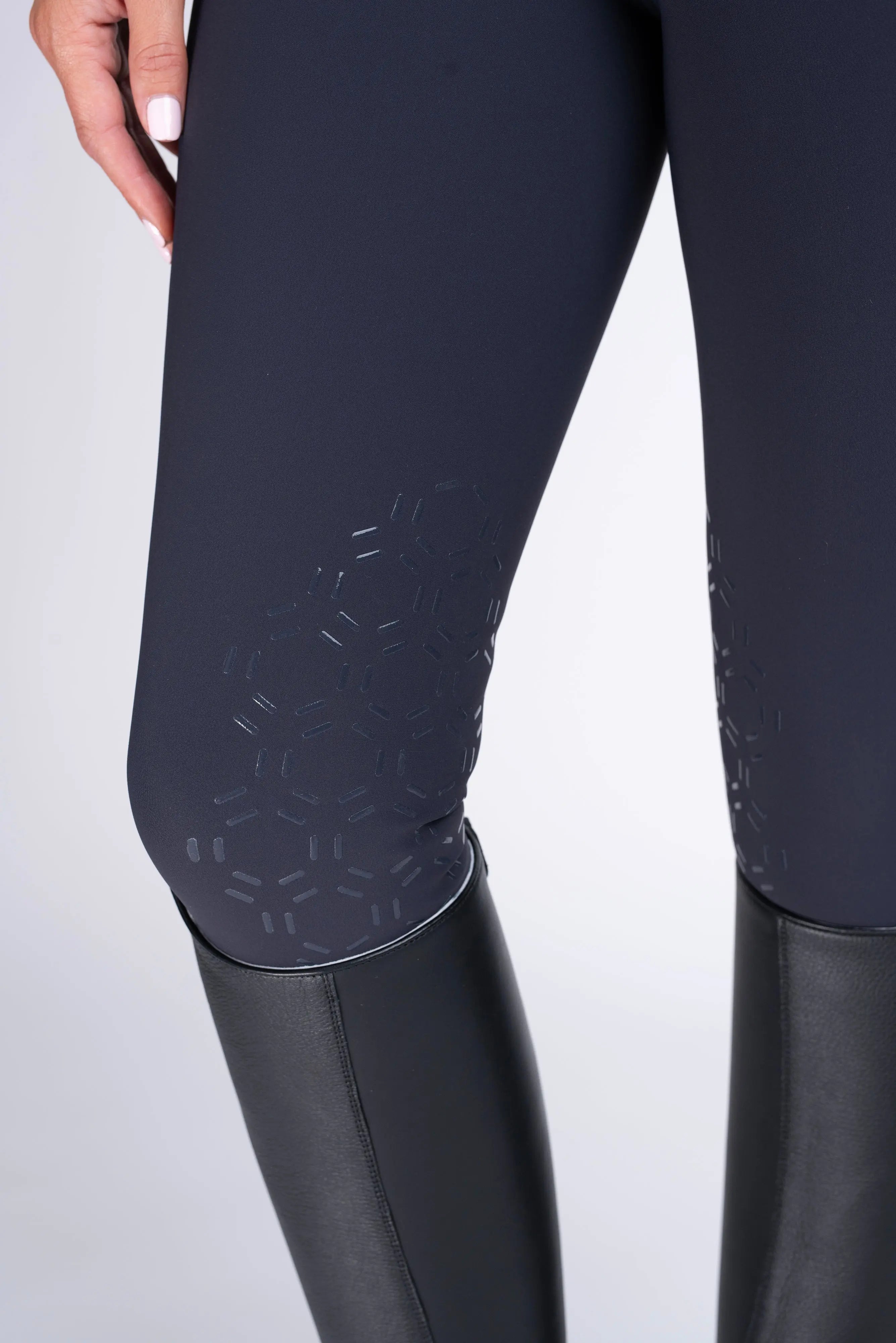 Silicone knee grip, belt loops, button and zip closure. Elegant black/silver detailing make these feel extra special.