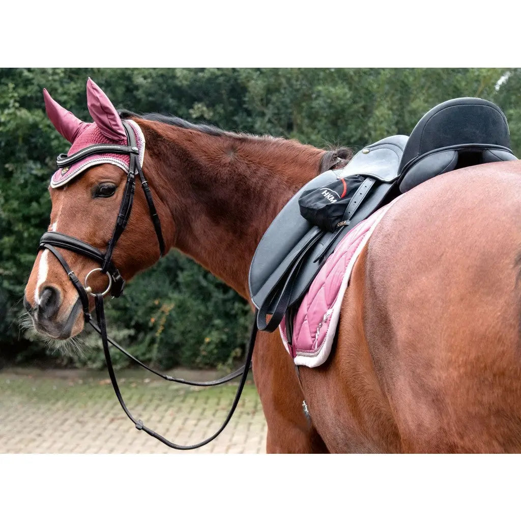 This luxurious saddlecloth features double braiding with a stylish bit design for adding a touch of luxury to your riding kit.