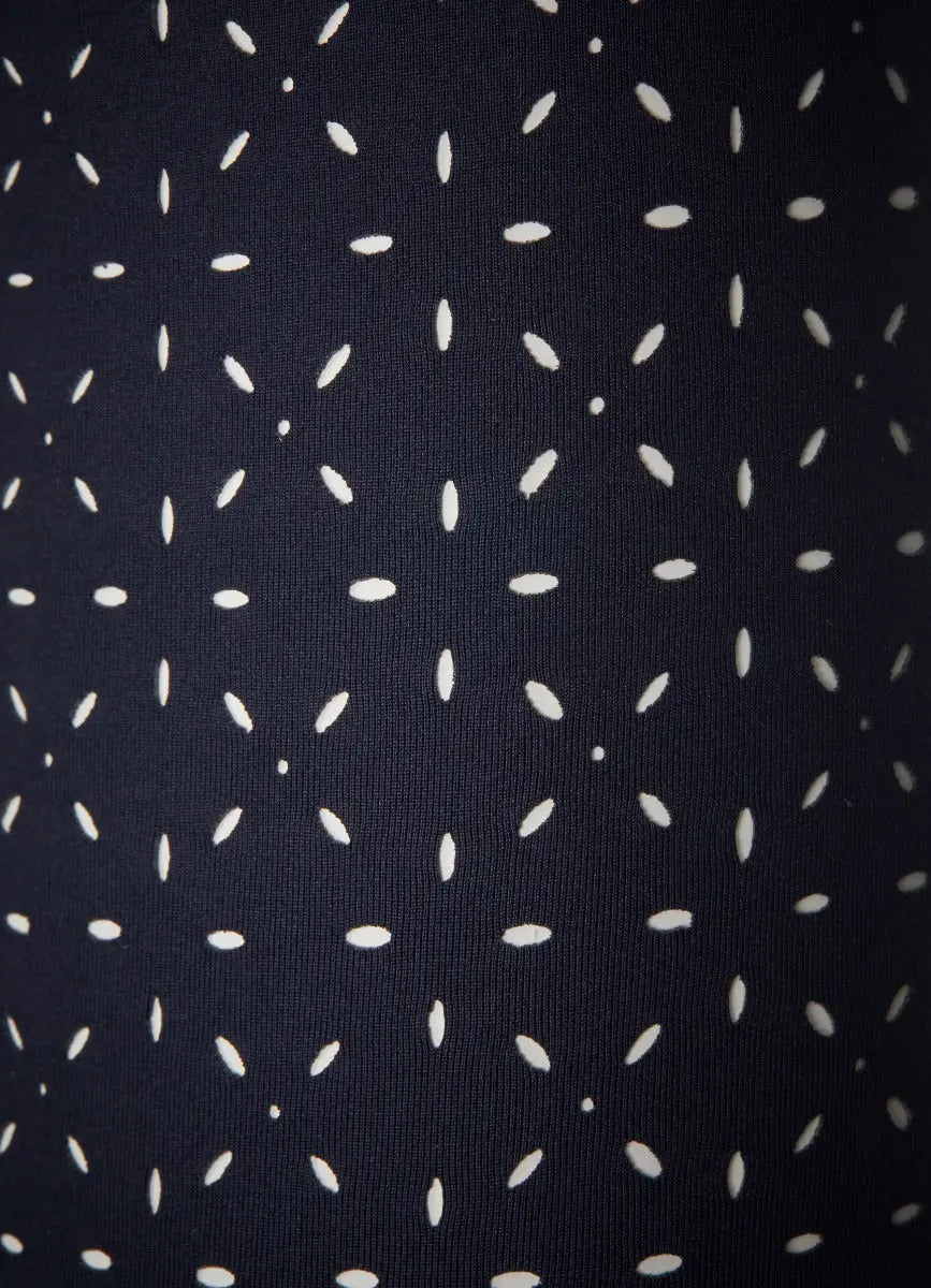 - Laser-cut lace sleeves and back yoke panel