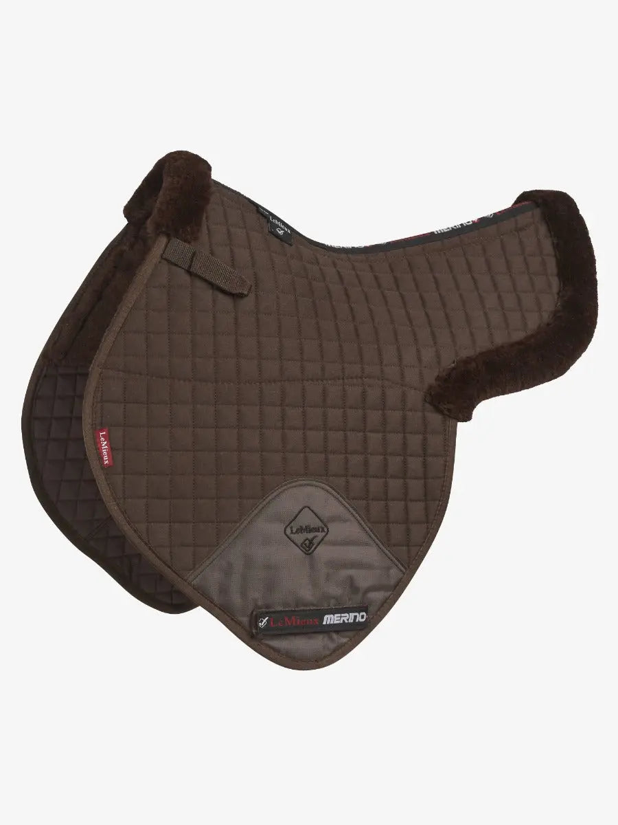The LeMieux Merino+ Half Lined Brown Close Contact Jump Numnah is a premium quality close contact numnah which is half lined with pure Australian Merino lambswool and shaped for comfort and airflow.