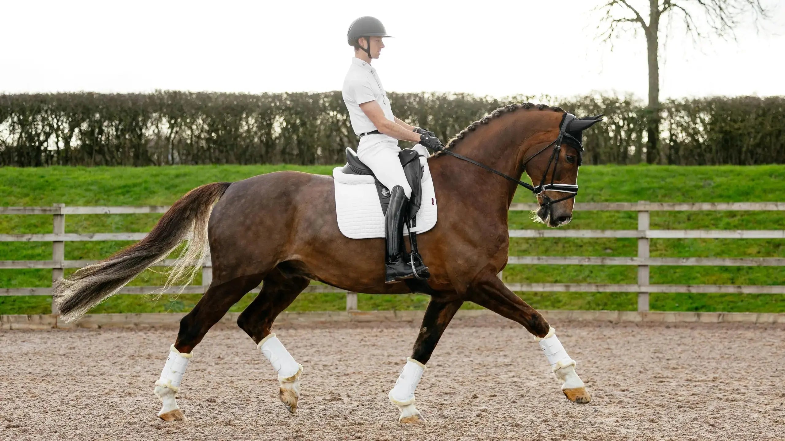 Match your Suede Dressage Square with a Classic Fly Hood in the same colour to complete the look.