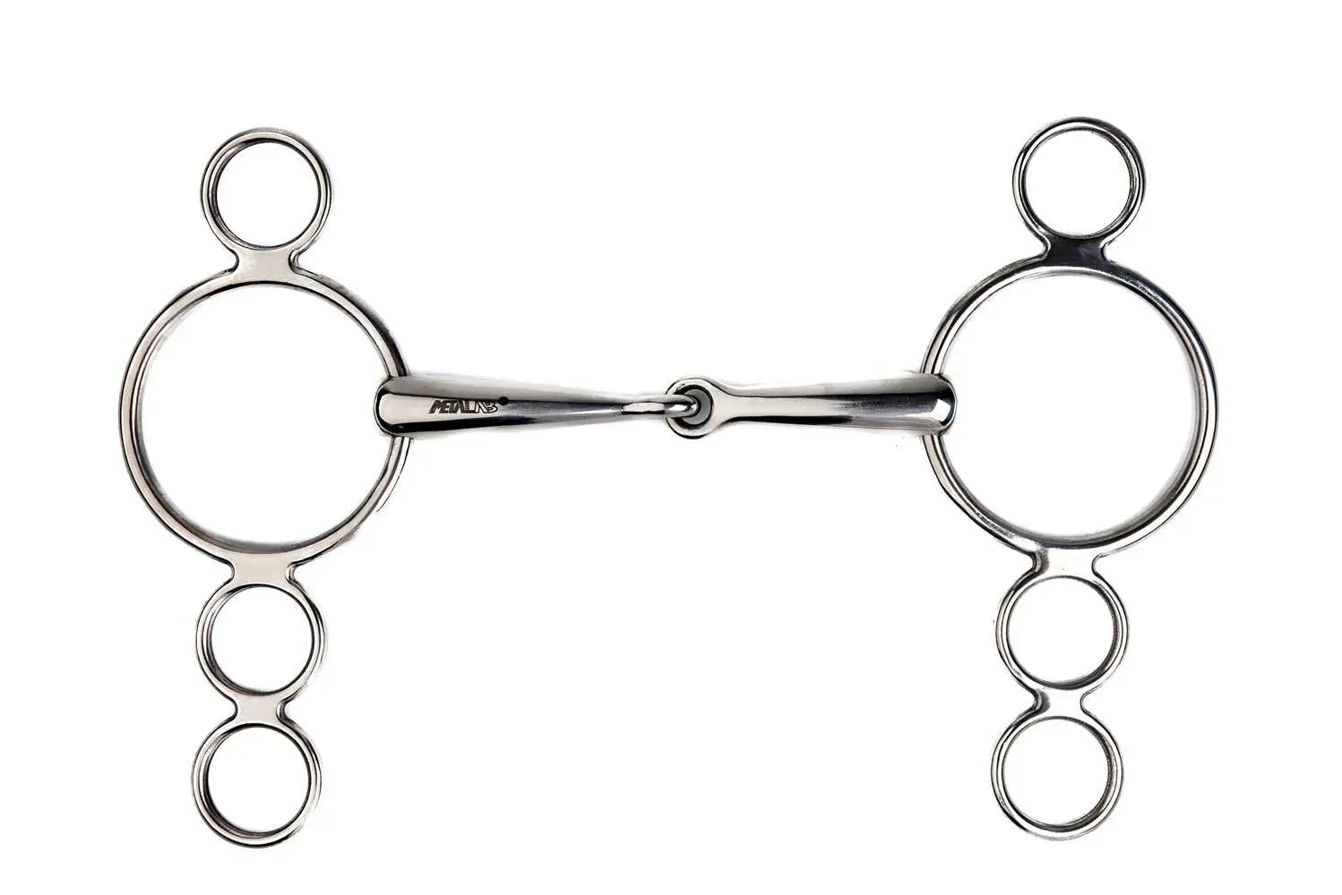 In stainless steel, simple breakage. Authorized according to FEI pony regulations.