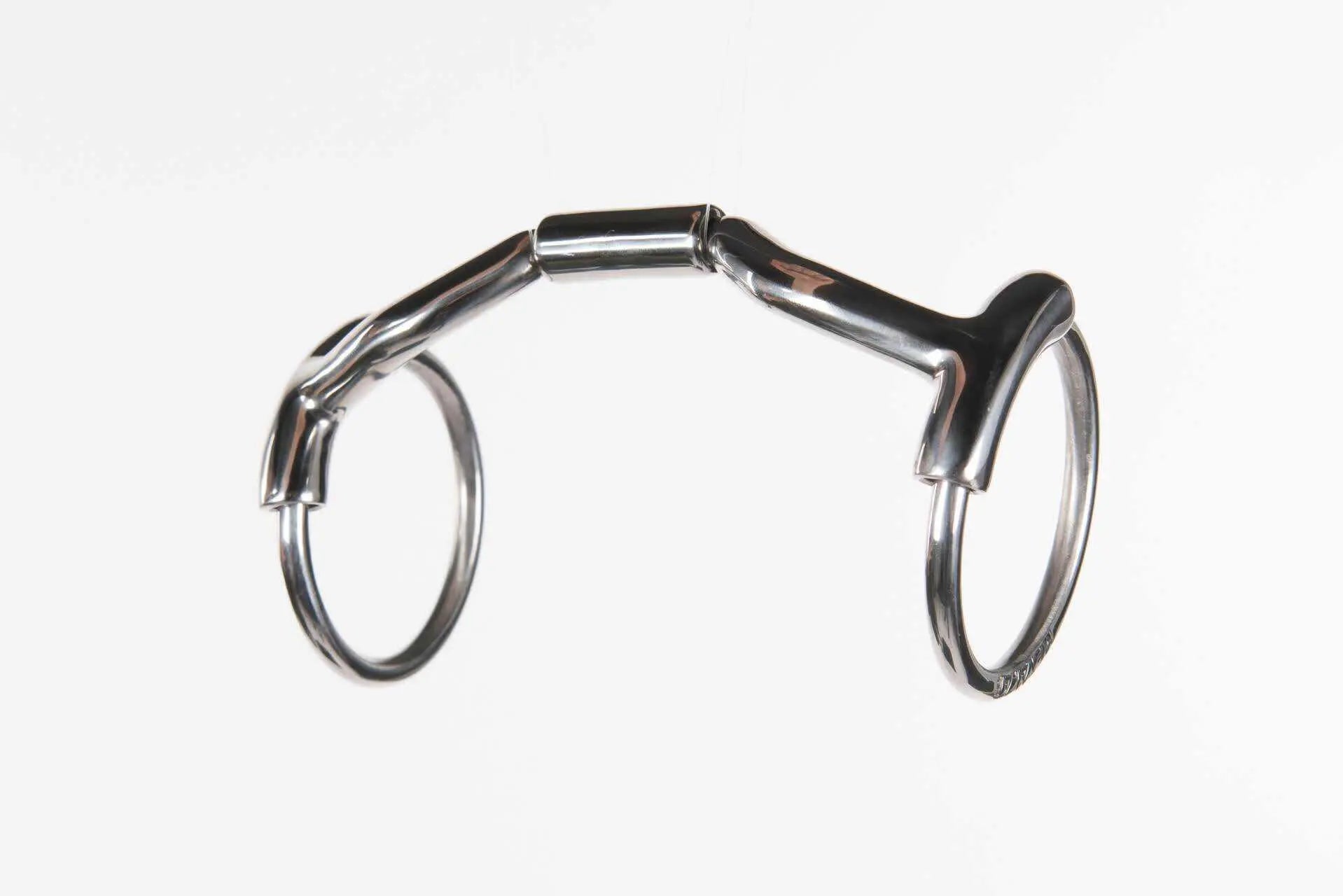 In stainless steel, curved snaffle, with protection of the corners. Tongue passage with a rolling central piece.