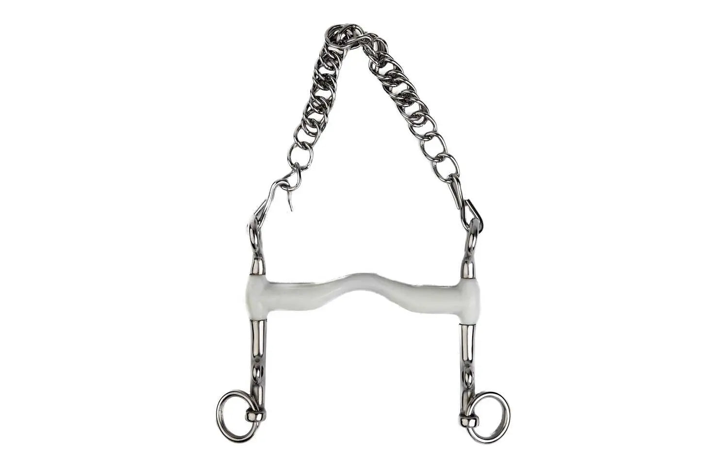 Stainless steel, flexi snaffle, low tongue passage.