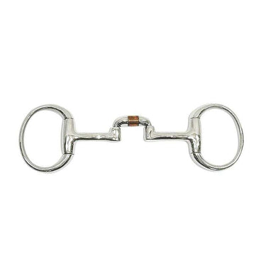 In stainless steel, double-jointed snaffle, central copper roller. Relaxation bit.