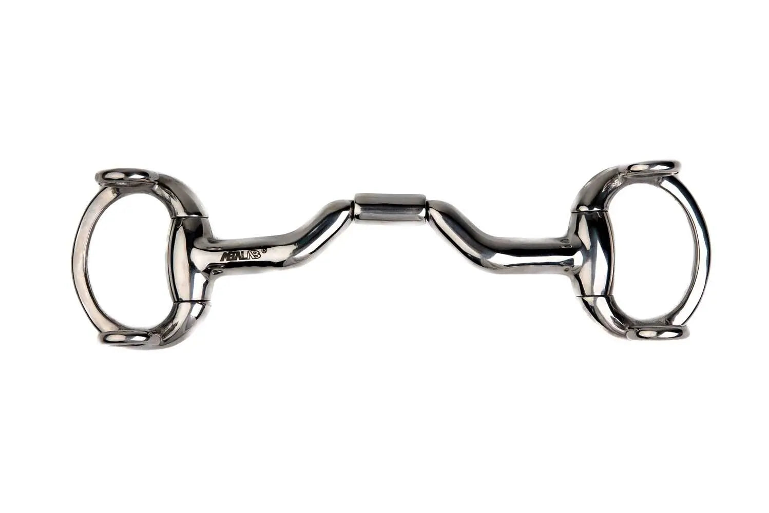 Stainless steel, curved snaffle, tongue passage with a rolling central piece.