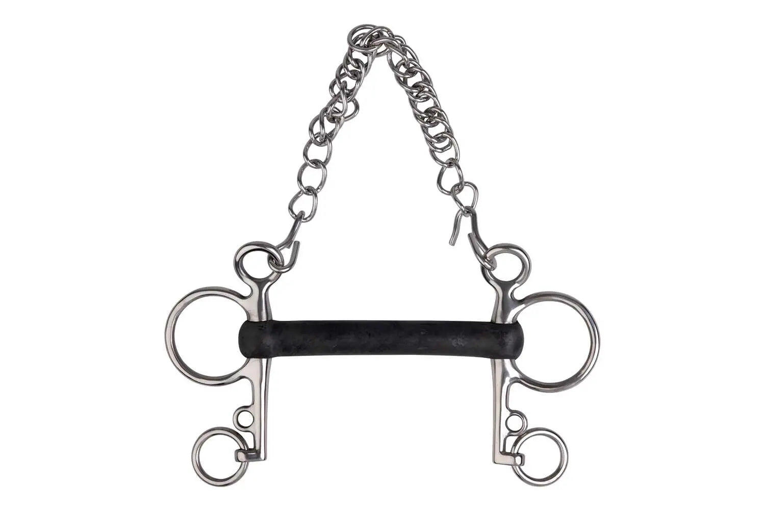In stainless steel, straight snaffle covered with soft rubber. Short branches.