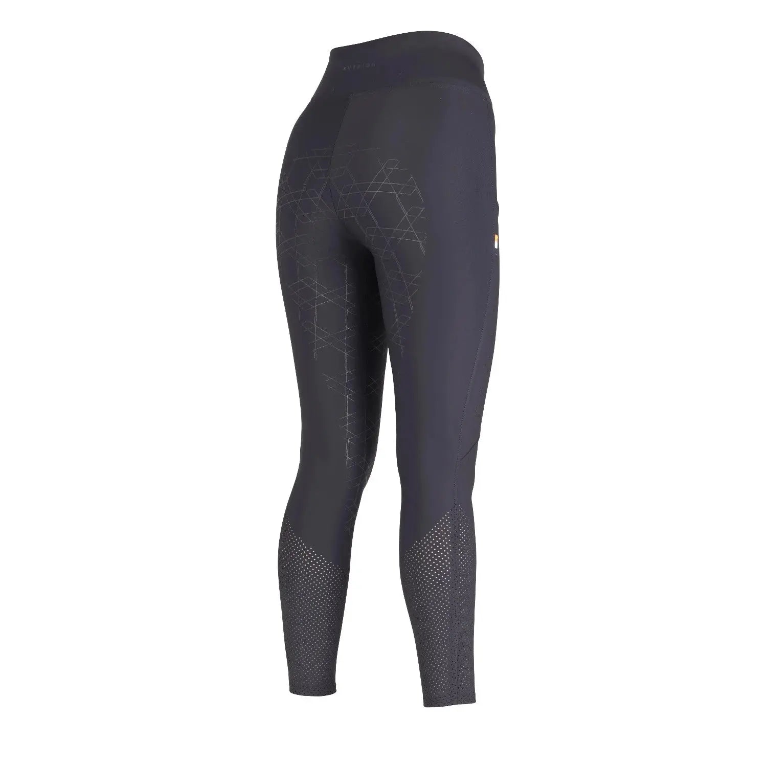 The high-waisted style adds core support and the silicone print ensures in-saddle security. Perfect for competition or training.