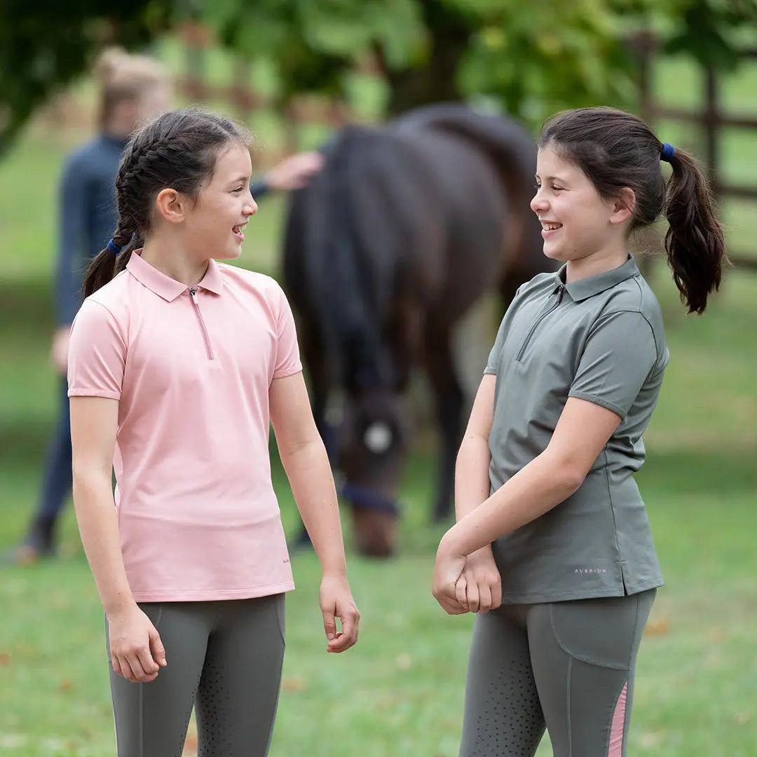 Shires Aubrion Young Rider Olive Poise Tech Polo-7 - 8 Years