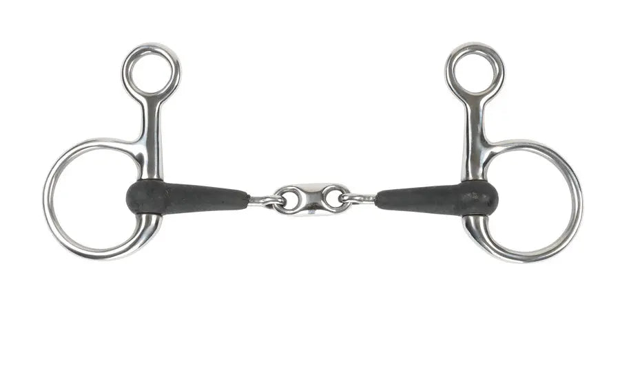The Shires Equikind+ Hanging Cheek Peanut Link Bit features a double jointed mouthpiece with a rounded central lozenge which sits at the centre of the tongue and distributes pressure evenly. This mouthpiece offers a kind and mild action. Equikind+ features coated stainless steel, producing a thinner mouthpiece than rubber and more comfortable for horses that don't have room for a thicker mouthpiece.