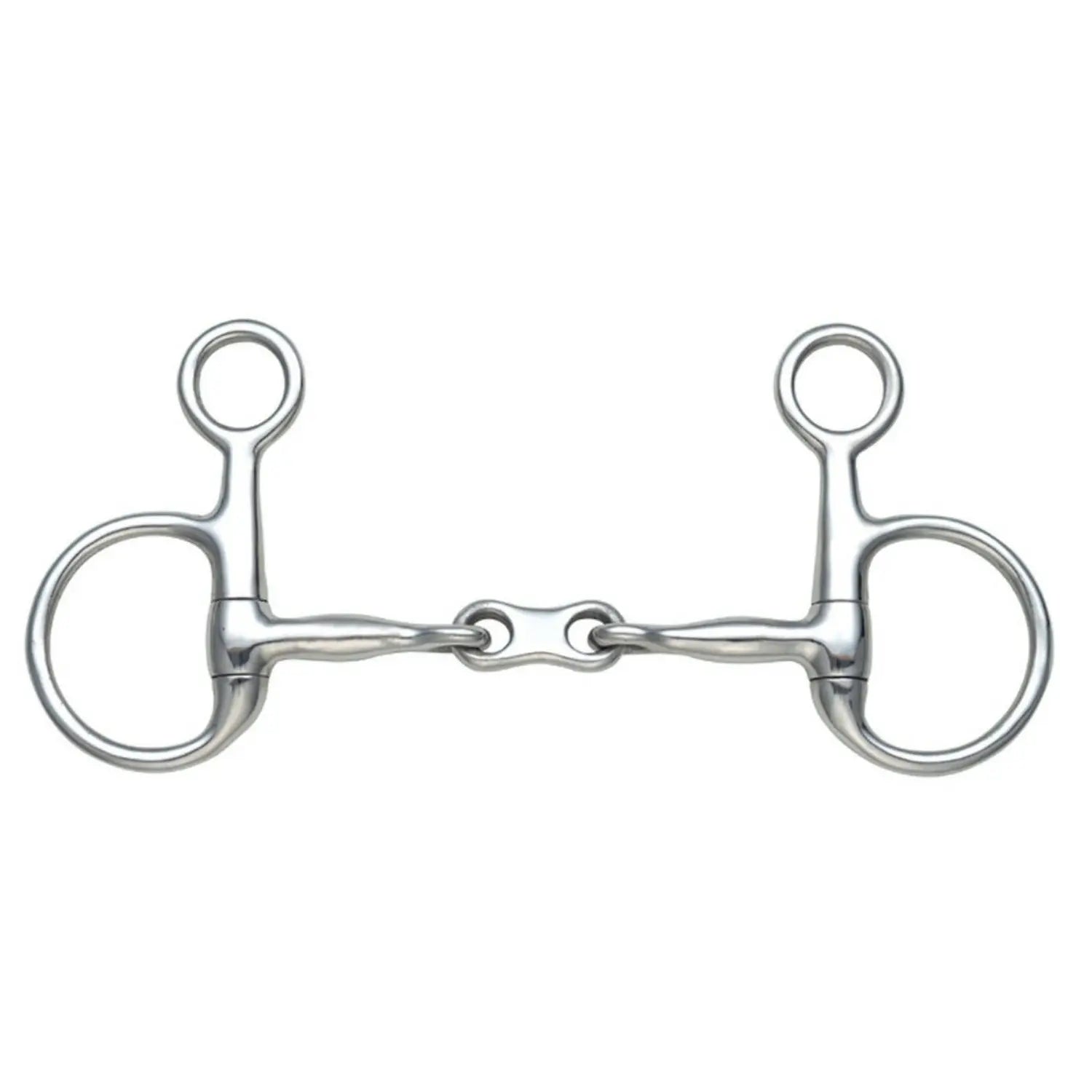The Shires French Link Hanging Cheek Snaffle features a double jointed mouthpiece with a flat central French link which sits at the centre of the tongue and distributes pressure evenly. This mouthpiece offers a kind and mild action, though slightly more pressure than a rounded lozenge. This flat plate will not interfere with the palate. The hanging cheeks fit with the smaller ring attaching to the bridle cheekpiece and can help to keep the bit more stable inside the horse's mouth, helping to encourage the horse to go forwards into an outline.British Dressage legal