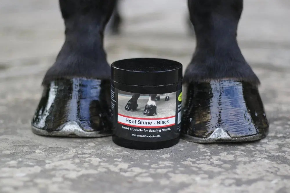 The Black Hoof Shine, sharing the same consistency, imparts a rich black hue for a stunning, refined appearance.