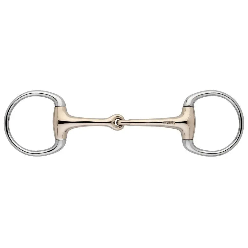 Highly recommended for horses that are unsteady in the contact with the bit. Eggbutts are suitable for horses with sensitive corners of their mouths, as they prevent them from being pinched which can happen with loose ring snaffles. The characteristic features of these bits are the oval rings which are fixed to the mouthpiece, keeping the bit steady in the mouth. They also prevent the bit from being pulled through the mouth, enabling the mouthpiece to direct gentle pressure onto the central point of the tongue. Made from Aurigan which composes of 85% copper, 4% nickel with zinc for superb oxidation.