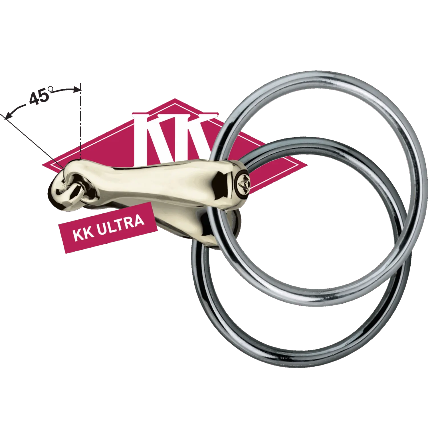 The Sprenger KK Ultra bits are pioneers of modern bits, developed on the basis of scientific research. The central link it set at a 45° angle to achieve a unique and precise effect. Compared to conventional bits, the KK Ultra's mouthpiece has an anatomically adapted mouthpiece: the middle link has been shortened which noticeably optimises its effect whilst being mouth and tongue friendly for the horse. When this bit is used correctly the horse's confidence in the rider's hand is enhanced; this bit is used with success in all disciplines and across all training levels.
